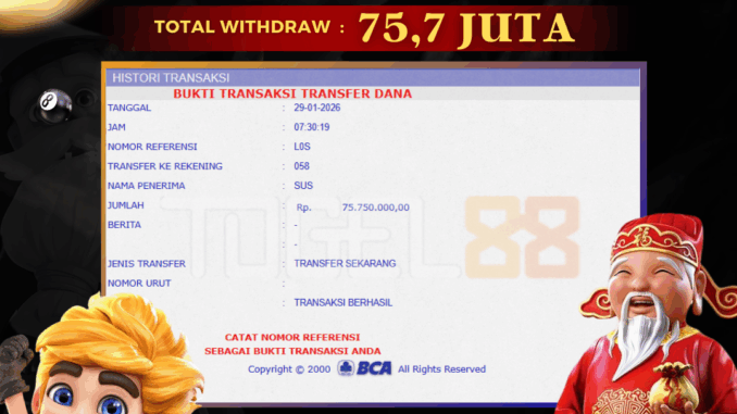 TOGEL88 mengucapkan selamat kepada user id : KOM*** yang telah berhasil mendapatkan jackpot pada permainan SLOT DI SUGAR RUSH 1000. Kemenangan sebesar Rp 75.750.000,-. telah dibayarkan LUNAS oleh pihak TOGEL88 kepada pemilik user id setelah yang bersangkutan mengisi formulir withdraw. Proses pencairan dana berlangsung sangat cepat hanya dalam waktu 5-10 menit sudah berada dalam rekening pemilik user id. Bukti transfer yang dapat anda lihat adalah bukti SAH / VALID yang langsung di dapatkan melalui bukti transaksi dari Bank yang digunakan untuk pengiriman dana pada rekening pemilik user id. Terima kasih kami sampaikan kepada para pengguna setia TOGEL88 yang telah menggunakan situs kami, sebagai Bandar Terpercaya yang pastinya membayar semua kemenangan member hingga lunas. Apakah TOGEL88 PENIPU ? Reputasi “TOGEL88 TERPERCAYA” sudah sangat melekat. puluhan hingga ratusan ribu pengguna setia TOGEL88 tetap menggunakan situs terbesar dan terbaik di Indonesia ini. Hapus rasa was-was dan khawatir anda, kemenangan anda berapapun PASTI dibayarkan hingga lunas.