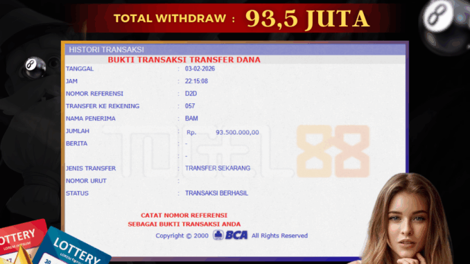 TOGEL88 mengucapkan selamat kepada user id : RAM*** yang telah berhasil mendapatkan jackpot pada permainan TOGEL DI TOTOMACAU 5D. Kemenangan sebesar Rp 93.500.000,-. telah dibayarkan LUNAS oleh pihak TOGEL88 kepada pemilik user id setelah yang bersangkutan mengisi formulir withdraw. Proses pencairan dana berlangsung sangat cepat hanya dalam waktu 5-10 menit sudah berada dalam rekening pemilik user id. Bukti transfer yang dapat anda lihat adalah bukti SAH / VALID yang langsung di dapatkan melalui bukti transaksi dari Bank yang digunakan untuk pengiriman dana pada rekening pemilik user id. Terima kasih kami sampaikan kepada para pengguna setia TOGEL88 yang telah menggunakan situs kami, sebagai Bandar Terpercaya yang pastinya membayar semua kemenangan member hingga lunas. Apakah TOGEL88 PENIPU ? Reputasi “TOGEL88 TERPERCAYA” sudah sangat melekat. puluhan hingga ratusan ribu pengguna setia TOGEL88 tetap menggunakan situs terbesar dan terbaik di Indonesia ini. Hapus rasa was-was dan khawatir anda, kemenangan anda berapapun PASTI dibayarkan hingga lunas.