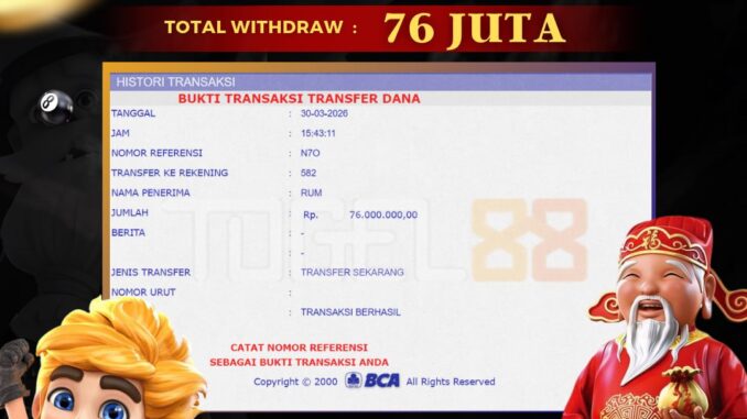 TOGEL88 mengucapkan selamat kepada user id : TIR*** yang telah berhasil mendapatkan jackpot pada permainan SLOT DI SUGAR RUSH 1000. Kemenangan sebesar Rp 76.000.000,-. telah dibayarkan LUNAS oleh pihak TOGEL88 kepada pemilik user id setelah yang bersangkutan mengisi formulir withdraw. Proses pencairan dana berlangsung sangat cepat hanya dalam waktu 5-10 menit sudah berada dalam rekening pemilik user id. Bukti transfer yang dapat anda lihat adalah bukti SAH / VALID yang langsung di dapatkan melalui bukti transaksi dari Bank yang digunakan untuk pengiriman dana udenlandske casinoer uden nemid pada rekening pemilik user id. Terima kasih kami sampaikan kepada para pengguna setia TOGEL88 yang telah menggunakan situs kami, sebagai Bandar Terpercaya yang pastinya membayar semua kemenangan member hingga fast paying casinos lunas. Apakah TOGEL88 PENIPU ? Reputasi “TOGEL88 TERPERCAYA” sudah sangat melekat. puluhan hingga ratusan ribu pengguna setia TOGEL88 tetap menggunakan udenlandske casinoer uden nemid situs terbesar dan terbaik di Indonesia ini. Hapus rasa was-was dan khawatir anda, kemenangan anda berapapun PASTI dibayarkan hingga lunas.