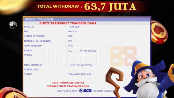 TOGEL88 mengucapkan selamat kepada user id : PRA*** yang telah berhasil mendapatkan jackpot pada permainan LIVE CASINO DI 24D SPIN. Kemenangan sebesar Rp 63.700.000,-. telah dibayarkan LUNAS oleh pihak TOGEL88 kepada pemilik user id setelah yang bersangkutan mengisi formulir withdraw. Proses pencairan dana berlangsung sangat cepat hanya dalam waktu 5-10 menit sudah berada dalam rekening pemilik user id. Bukti transfer yang dapat anda lihat adalah bukti SAH / VALID yang langsung di dapatkan melalui bukti transaksi dari Bank yang digunakan untuk pengiriman dana pada rekening pemilik user id. Terima kasih kami sampaikan kepada para pengguna setia TOGEL88 yang telah menggunakan situs kami, sebagai Bandar Terpercaya yang pastinya membayar semua kemenangan member hingga lunas. Apakah TOGEL88 PENIPU ? Reputasi “TOGEL88 TERPERCAYA” sudah sangat melekat. puluhan hingga ratusan ribu pengguna setia TOGEL88 tetap menggunakan situs terbesar dan terbaik di Indonesia ini. Hapus rasa was-was dan khawatir anda, kemenangan anda berapapun PASTI dibayarkan hingga lunas.
